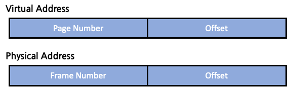 - 페이지 테이블 통해 사용되는 가상주소 물리주소 모두 number + offset의 구조를 갖는다.