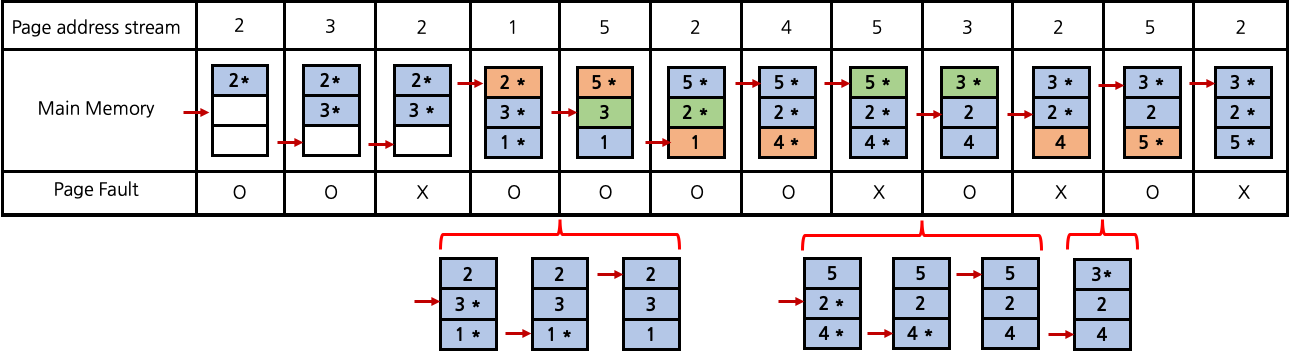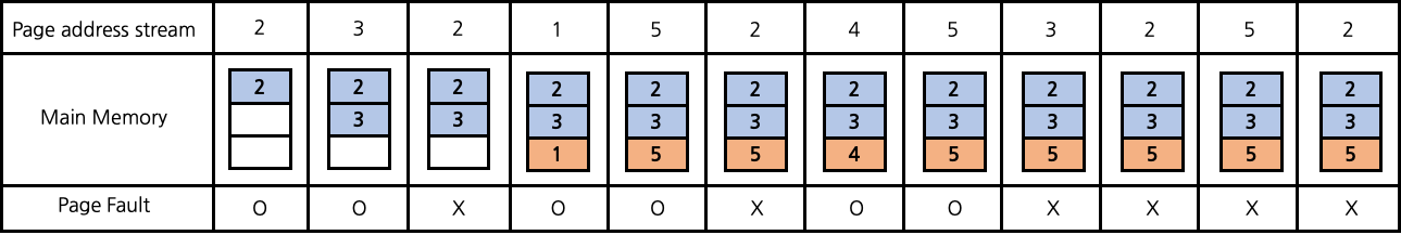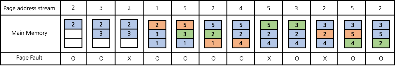 - 가장 오랫동안 참조되지 않은 페이지를 교체
